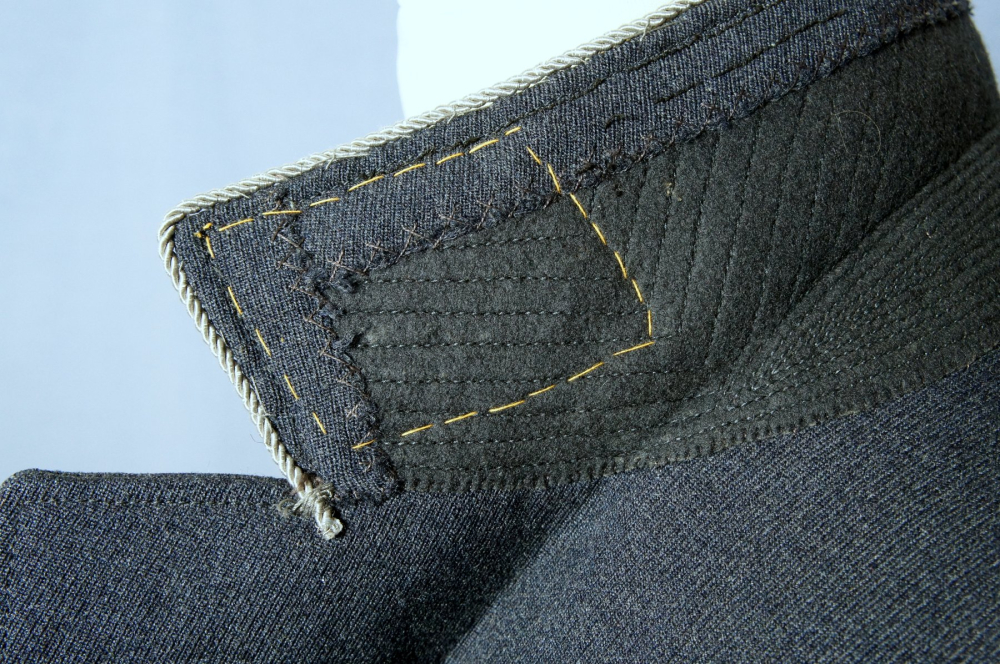 A few small moth holes mostly in the back of the collar, otherwise very nice condition.